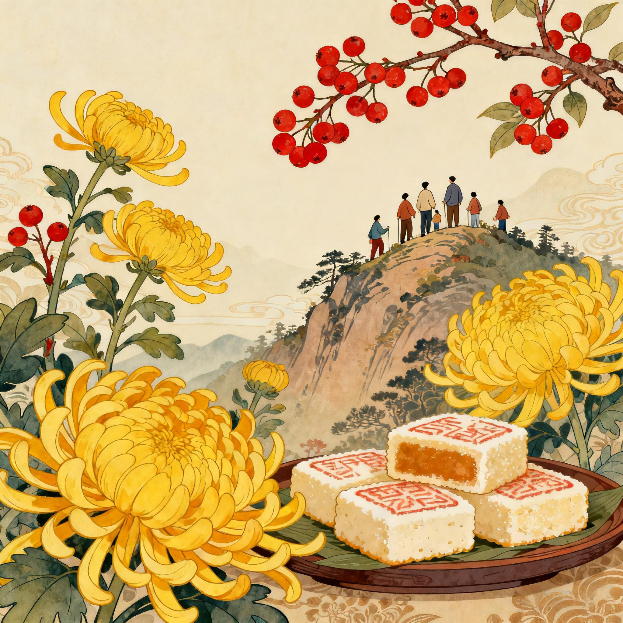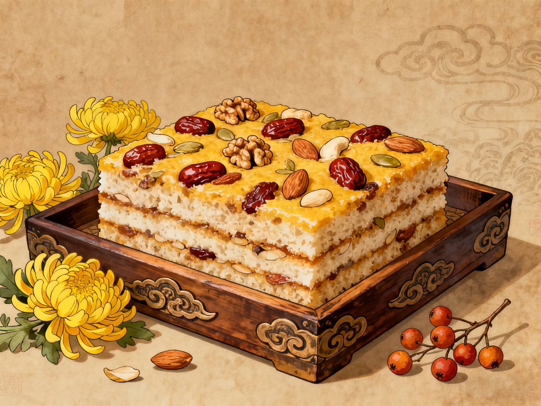 吃“重阳糕”是最富人情味与烟火气的习俗。“糕”与“高”同音,对于无法登高的人,吃一块软糯香甜的糕,便也算应了节景,讨了“步步高升”的吉利。那糕上的红枣、栗子、果脯,如同生活里点点滴滴的甜蜜,慰藉着人们的肠胃与心灵。